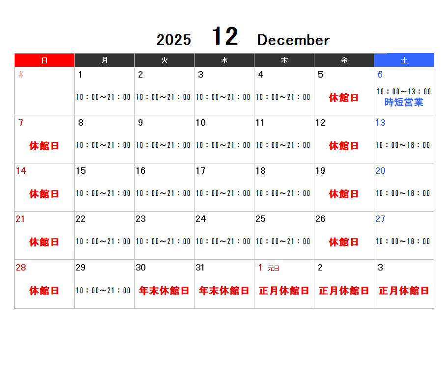 【12月の営業カレンダー公開!】